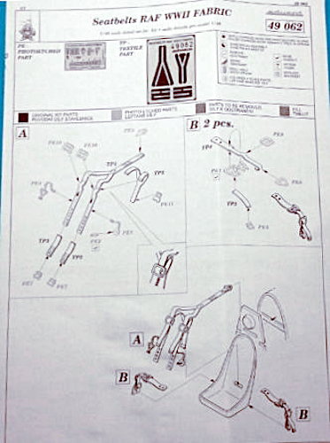 Die Gebrauchsanleitung empfiehlt, die Gurtteile vor Gebrauch zu einem Ball zusammen zu drücken und diesen zwischen den Fingern zu kneten, bevor die Schnallen angebracht werden sollen. Anschließend wird eine Alterung nach dem Prinzip eines Darkwash und eventuell ein Drybrushing empfohlen. Das Endergebnis ähnelt dem Sutton-Harness der RAF, mit seinem durch die Sitzpanzerung geführten hinteren Befestigungsgurt, allerdings fehlen die auffälligen genieteten Löcher. Der Sutton Harness wurde bis ca. 1943 eingebaut.