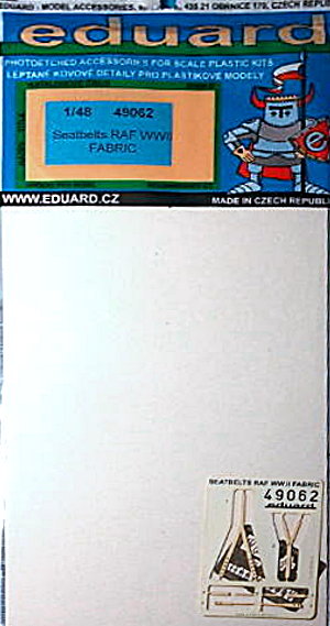 Viele Modellbauer haben Probleme mit der Anbringung von Gurten aus geätztem Metall, weil diese nicht immer einfach in eine natürlich wirkende Position zu bringen sind. Eduard schafft hier (allerdings nicht als erster Anbieter) Abhilfe und bringt einen neuen Typ Gurt aus flexibler Kunststoff-Folie heraus, die farbig bedruckt ist und mit fotogeätzten Schnallen versehen werden muss. Die Gurte werden auf einem Papierrücken haftend geliefert und haben feinste Löcher für die Schnallen. Beim ersten Ansehen nahm ich an, die Folien wären selbstklebend, was sich aber als Irrtum herausstellte. Die Fotoätzteile sind nicht farbig bedruckt, was aber nicht weiter stört, da die natürliche Farbe des Metalls dem Vorbild sehr gut entspricht.