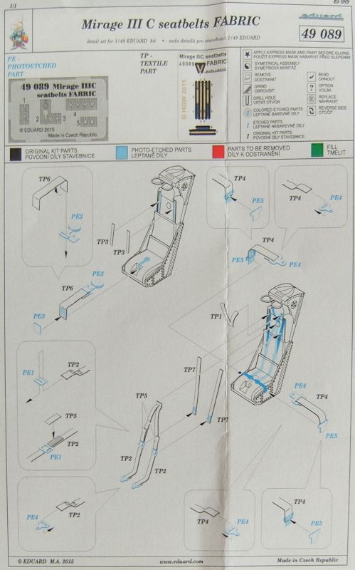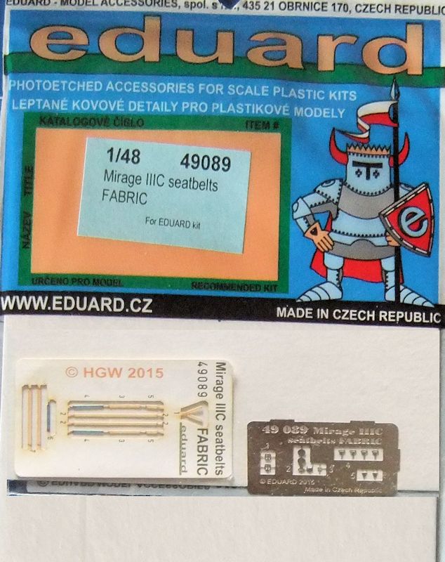 Das Gurtzeug ist für die Mirage III C von Eduard. Die Qualität des Produktes ist hervorragend. Doch ist das Gurtzeug nur dem fortgeschrittenen Modellbauer zu empfehlen, denn er braucht gute Augen, um die feinen dem Leinen entsprechenden Gurten, mit den winzigen Schnallen aus Messing sauber zu verbinden.