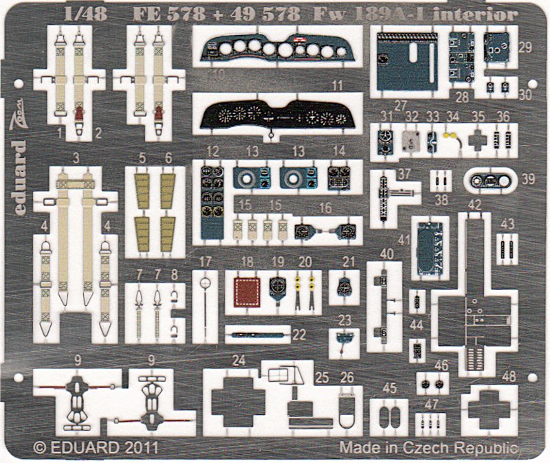 Mit diesem ersten Satz geht es an die Verfeinerung des Cockpits der Fw 189A-1, im speziellen der Behelfsnachtjägervariante von GWH. Der Satz enthält 2 Fotoätzplatinen. Einer davon ist farbig bedruckt und einige Teile sind rückseitig mit einem Druck-aktivierten Klebstoff versehen. Dieser ist auch separat als ZOOM Satz erhältlich.