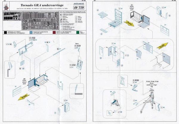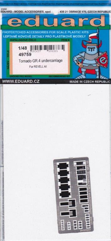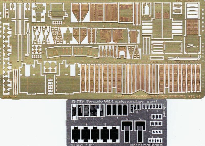 Mit diesem Satz für den Revell Tornado können die Fahrwerkschächte und das Fahrwerk einer weiteren Detaillierung unterzogen werden. In der eduardtypischen Verpackung sind ein farbiger und ein größerer messingfarbener Ätzteilbogen enthalten. Eine doppelseitige Bauanleitung liegt bei. Aufgrund der Komplexität der Metallteile sollte man schon etwas Erfahrung mit der Verarbeitung von Ätzteilen mitbringen.
