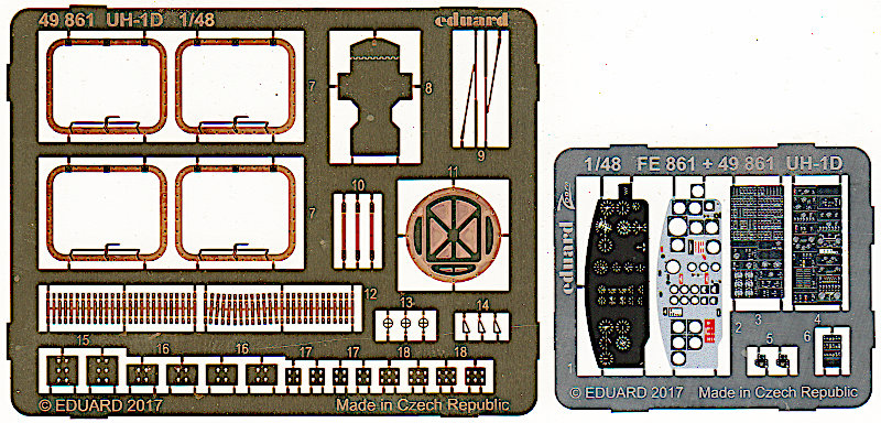 Für die Bell UH-1D von KittyHawk (First Look) hat Eduard einige Detail- und Zubehörsätze herausgebracht. Das gros machen natürlich die Fotoätzteilsätze aus, derer es drei gibt. Hier möchte ich den "großen" Detailsatz vorstellen: