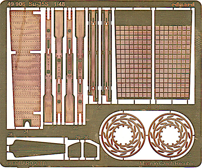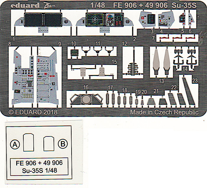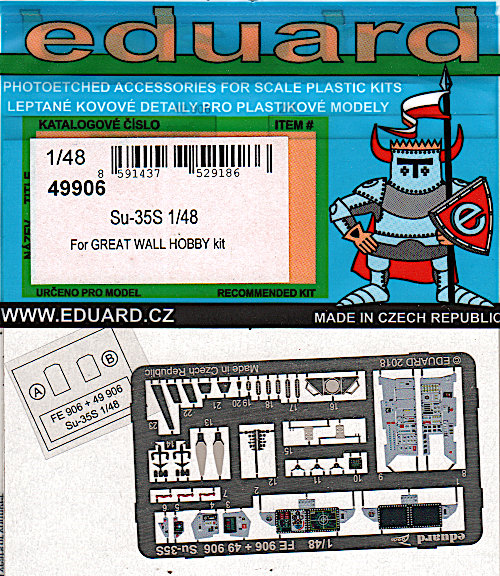 Für die Suchoi Su-35S von Great Wall Hobby (First Look) hat Eduard eine Reihe von Detail- und Zubehörsätzen herausgebracht. Wie fast immer bietet Eduard einen Zooms Satz und einen umfangreicheren Satz an, der aus zwei Platinen besteht. Letzteren stelle ich hier vor.