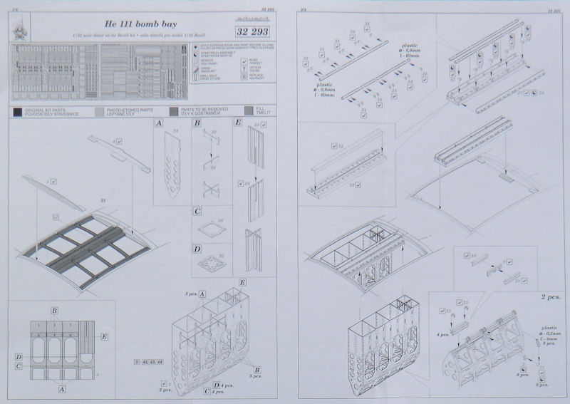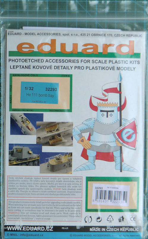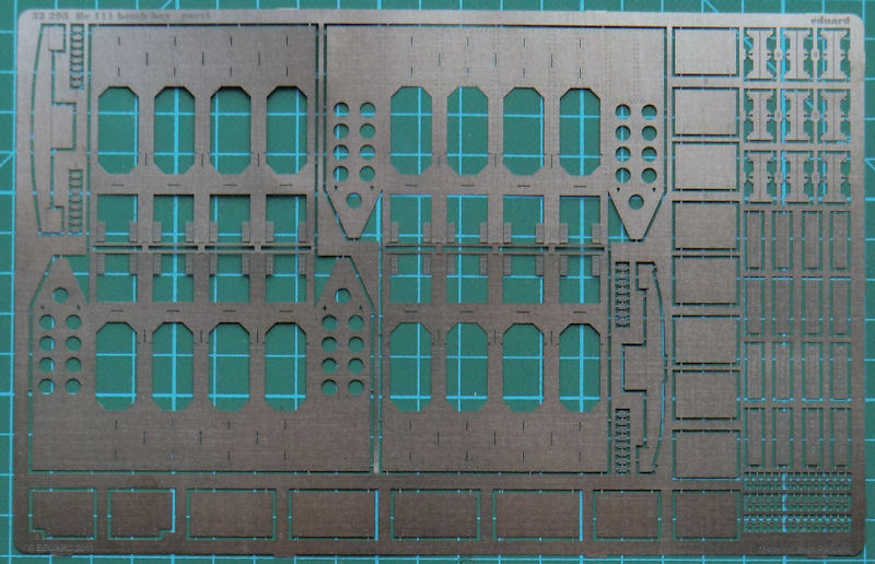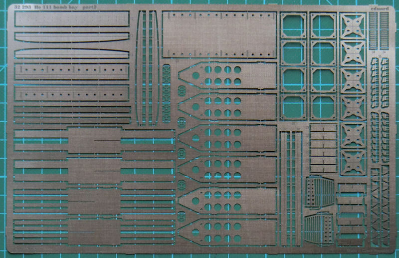 Für den großen gut gemanchten Revell-Bausatz der Heinkel He 111P hat eduard ein Detailset für den Bombenschacht herausgebracht. Es enthält zwei Fotoätzplatinen. Hier gibt es Details für den Schacht satt. So erhält alles was man für die Detaillierung des Schachtes benötigt.