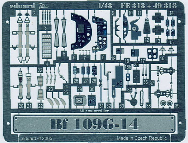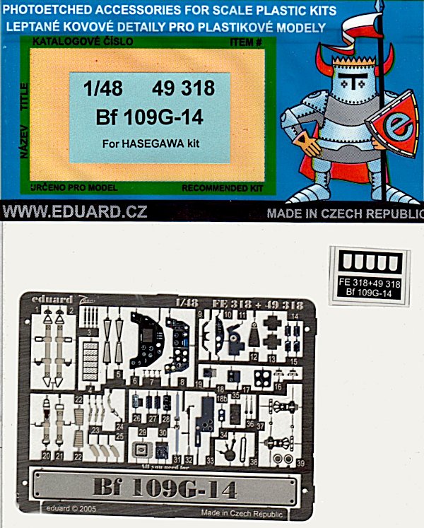 Schon vor einigen Jahren hat eduard diesen Satz für die Bf 109G-14 von Hasegawa heraus gebracht. Da ich kürzlich nach etwas Zubehör für die Bf 109G-14/AS suchte, stieß ich auf diesen Satz, der zudem noch stark preisgesenkt war.