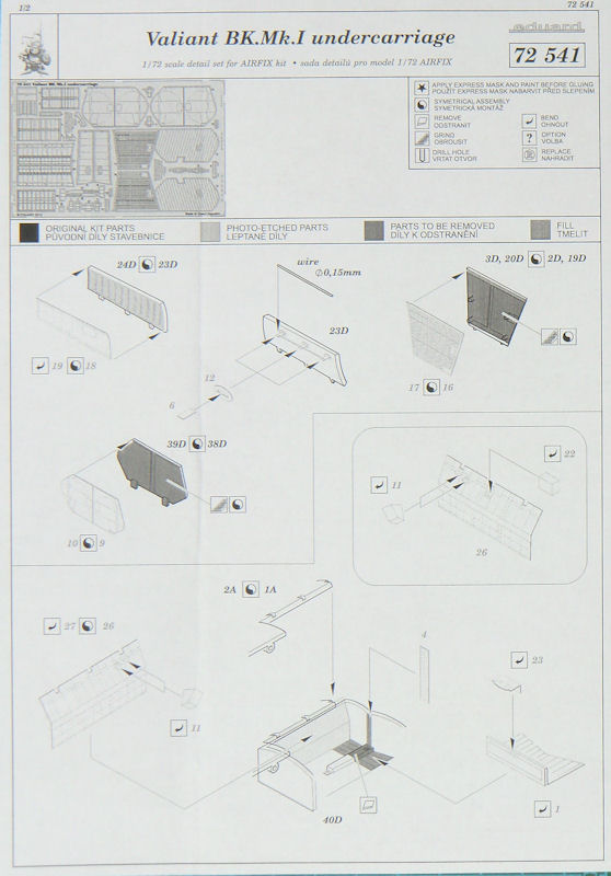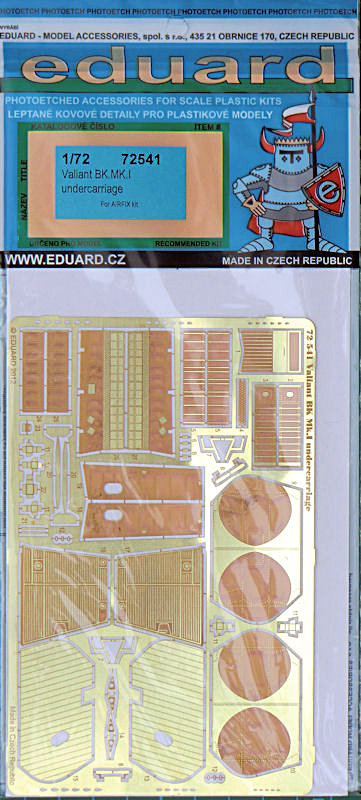 Für den soliden Airfix-Bausatz der Vickers Valiant BK Mk.1 hat eduard ein Fotoätzteilset für die Fahrwerksschächte des Modells herausgebracht. Das Set enthält Details für die Fahrwerksschächte, denn nichts ist so gut, dass es nicht noch besser oder viel mehr detaillierter geht. So werden die Fahrwerksklappen innen mit Details versehen und auch das Bugfahrwerk wird mittels Fahrwerksschere aus Fotoätzmaterial verfeinert.