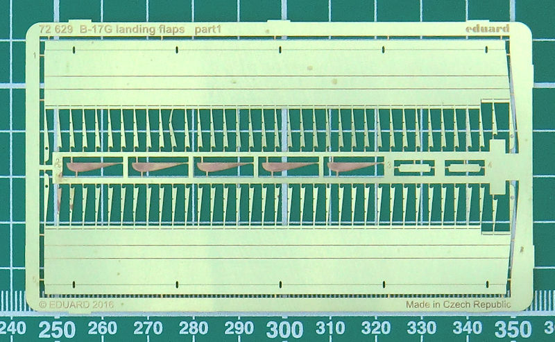 Fazit: Dieses eduard-Set für den Airfix-Bausatz der Boeing B-17G in 1/72 ist für die Modellbauer gedacht die etwas besonderes suchen. Mit den Fotoätzteilen lassen sich ausgefahrene Landeklappen darstellen. Man sollte sich aber anhand von Fotos genau ansehen wie und wann die Klappen beim Original draußen waren.