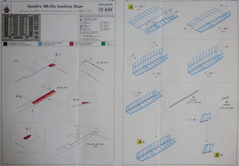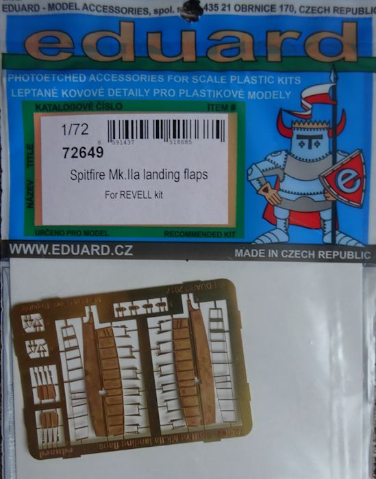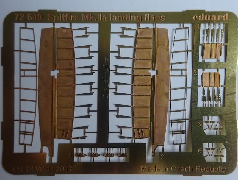 Der vorliegende Satz wertet die Spitfire Mk.IIa von Revell auf. Auf der messingfarbenen Platine finden wir zwei Landeklappen nebst den dazugehörigen Strukturelementen. Musste man bisher mit ausgesägten Teilen Leben ans Modell bringen, bieten eduards Ätzteile die bessere Alternative.