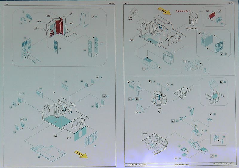 Dieses Set ist recht anspruchsvoll. Die mehrfarbig bedruckten Instrumente detaillieren das gesamte Cockpit sehr gut. Mittels der unbedruckten Platine kann man einige nichtstrukturierte Kunststoffteile ersetzen. Dafür muss allerdings die Säge angesetzt werden. Einige Teile sind auf für die Detaillierung des Drehturms gedacht.
