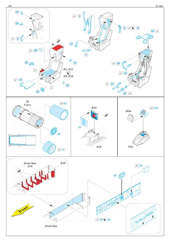 Dieses Set ist ist nicht unbedingt für Anfänger gedacht. Die mehrfarbig bedruckten Instrumente detaillieren das gesamte Cockpit sehr gut. Ein paar erhabenen Strukturen müssen zuvor entfernt werden. Erst dann können die Instrumente aufgeklebt werden.