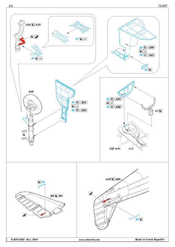 Für den gelungenen Bausatz der Kawasaki Ki-61-Id von Tamiya hat eduard u.a. ein Fotoätzteilset herausgebracht. Dieses ZOOM-Set enthält zwei kleine Platinen und die Bauanleitung. Eduard liefert hier wunderschöne mehrfarbig bedruckte Details für das Innere des Bausatzes. So gibt es ua. neue Instrumente, Sitzgurte, Seitenruderpedale, weiterhin weitere Kleinteile fürs Cockpit.