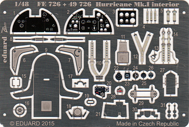 Für Airfix' neue Hurricane Mk.I (First Look) liefert Eduard eine ganze Reihe von Zubehörsätzen in fast allen Produktlinien aus. Der Grundbausatz ist eigentlich recht stimmig, so dass man mit einem Zoom Satz mit Gurten und Instrumentenbrett eigentlich das wichtigste an Board hat, um aus dem Cockpit einen Hingucker zu machen.