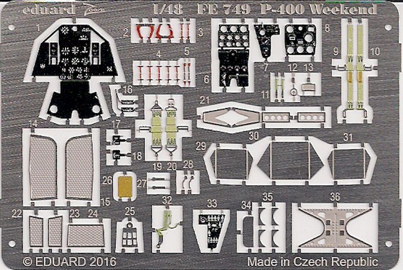 Eduard bringt zur eigenen Airacobra-Modellreihe weitere Zurüstteile heraus. Diesmal geht es um die Fotoätzteile, die in ähnlicher Form schon mehreren Profipack- und Limited Edition-Kits beilagen und jetzt separat zu kaufen sind. Auch wenn sie mit P-400 Weekend tituliert sind, so können sie doch für alle Eduard P-39/P-400-Bausätze verwendet werden.