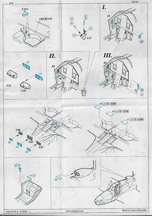Wie bei Eduards Zoom-Set-Reihe üblich, findet man auf der Platine mit 36 Teilen neben dem exzellenten gedruckten Instrumentenbrett noch weitere farbige Teile zum Verfeinern des bei geöffneten Türen gut einzusehenden Cockpits sowie ein paar feine Lüftungsgitter.