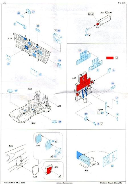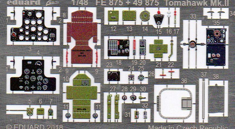 Die rund vierzig farbigen Ätzteile sind zum Teil in Interior Green-ähnlichem Ton bedruckt, was evtl. zu Diskrepanzen zum Rest der auf der Innenseite verwendeten Farbe des Modells führen kann.