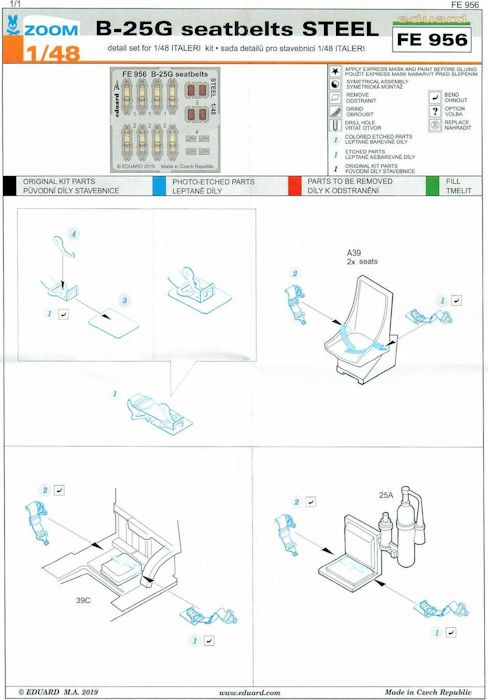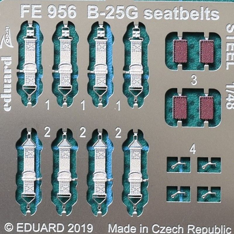 Wie so oft müssen die Sitzgurte separat angeschafft werden. Die Gurte lassen sich allerdings auch für andere B-25 Versionen verwenden.