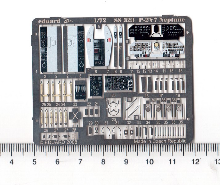 Für den Bausatz der Neptune in 1:72 von Hasegawa bzw. auch von Revell hat eduard u.a. 2008 diesen Ätzteilebogen aus der Zoom Serie herausgebracht. Mit ihm kann der Modellbauer im Wesentlich den Cockpitbereich deutlich aufwerten, welcher doch aus dem recht einfach ist. Dazu liefert der Satz ein paar bedruckte Panels inklusive dem Overheadpanel. Auch der Arbeitplatz des Navigators erhält ein solches.