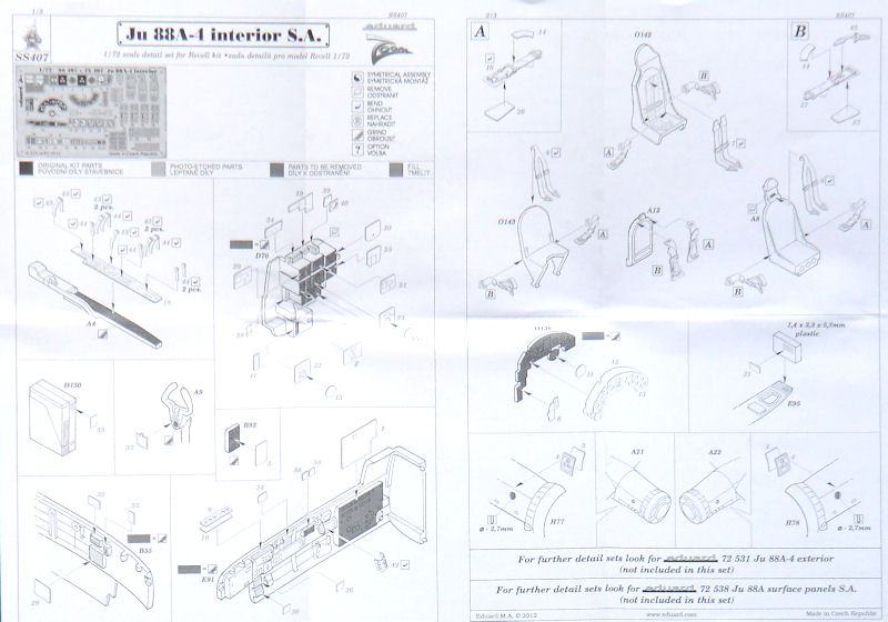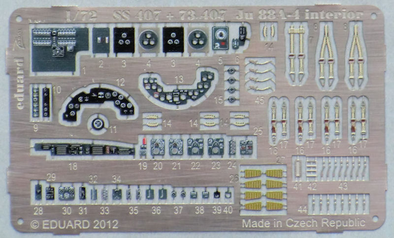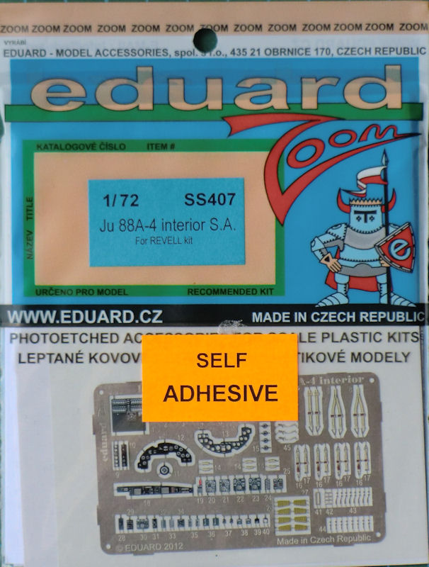 Für den gelungenen neuen Revell Spritzgussbausatz der Junkers Ju 88A-4 im Maßstab 1/72 hat eduard ein Zoom-Fotoätzteilset herausgebracht. Es enthält sinnvolle Teile für die Inneneinrichtung dieses Revell-Bausatzes. Die farbig bedruckten Instrumente ersetzen Decalbögen aus dem Bausatz. Es gibt weiterhin als schöne Ergänzung geätzte Sitzgurte.