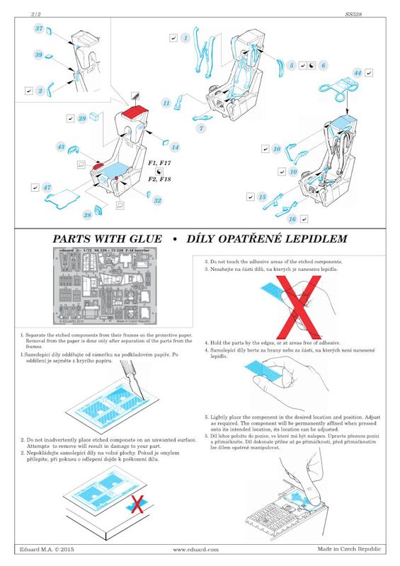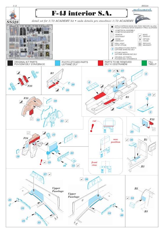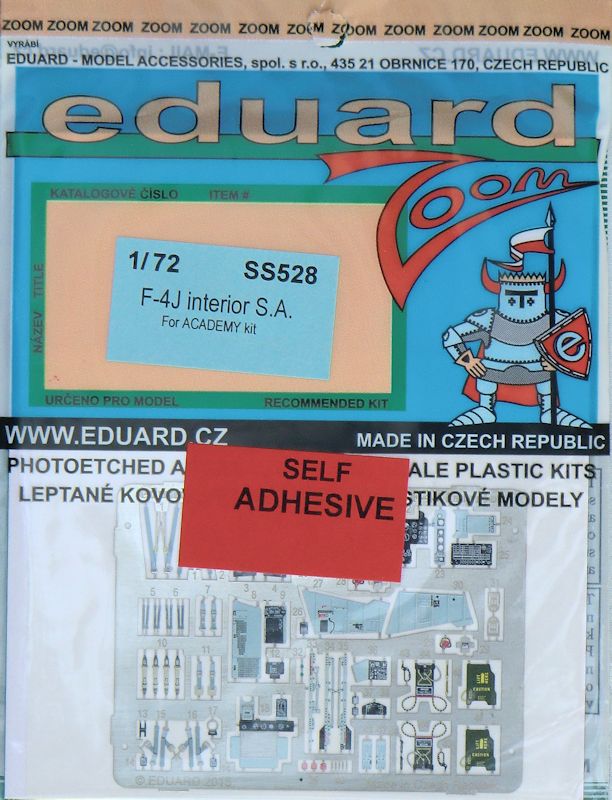 Für den neuen ACADEMY-Bausatz der McDonnell Douglas F-4J Phantom II hat eduard unter anderen ein ZOOM-Fotoätzteilset für den Bausatz herausgebracht. Es enthält ein kleine mehrfarbig bedruckte Platine und die übersichtliche Bauanleitung. Eduard hat an die obligatorischen mehrfarbigen Sitzgurte für die Schleudersitze und an die Instrumente fürs Cockpit gedacht. Weiterhin gibt es weitere Details fürs Cockpit.
