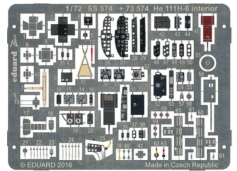 Der Fotoätzteilsatz enthält eine farbige Platine, Sie enthält für das Cockpit u.a. Instrumententafeln, Funkgerät, Bombenzielgerät und Kompass.