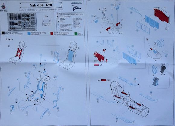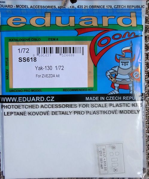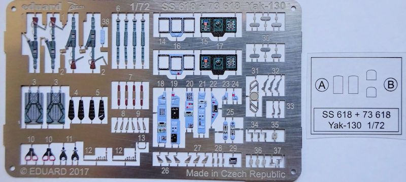 Der vorliegende Zoomsatz wertet das Jak-130 Modell von Zvezda auf. Die farbigen Ätzteile bieten neue Instrumentenkonsolen, Multifunktionsbildschirme, Sitzgurte sowie weitere Teile für das Cockpitdach. Für das Reflexvisier gibt es eine kleine Folie.