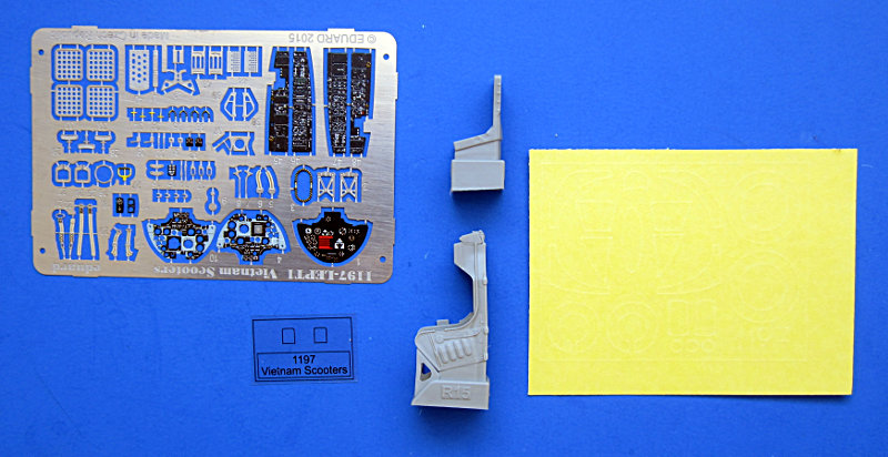 Neu sind die Zugaben von Eduard. Hier sticht vor allem der neue Schleudersitz hervor. Dieser ist sehr schön, zweiteilig in Resin abgegossen. Die Gurte liegen als Ätzteile bei. Die übrigen Fotoätzteile werden mehrheitlich für die Ausgestaltung des Cockpits verwendet. Für die A-4E und A-4F gibt es jeweils Instrumentenbrett und Seitenkonsolen. Somit wird eine Schwäche des Hasegawa-Bausatzes – das einfach gestaltete Cockpit – zur Stärke dieser Edition. Ebenfalls spartanisch ist die Bewaffnung. Eduard ändert daran mit diesem Bausatz nichts, bietet jedoch einen Brassin-Satz mit umfangreicher Waffenlast an.