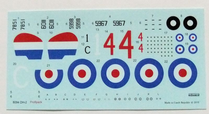 Bemalung: Vier Gestaltungsmöglichkeiten sind vorgesehen. Alle hinterlassen einen recht farbenfrohen Eindruck, trotz des damaligen Standartanstrichs britischer Kampfflugzeuge: