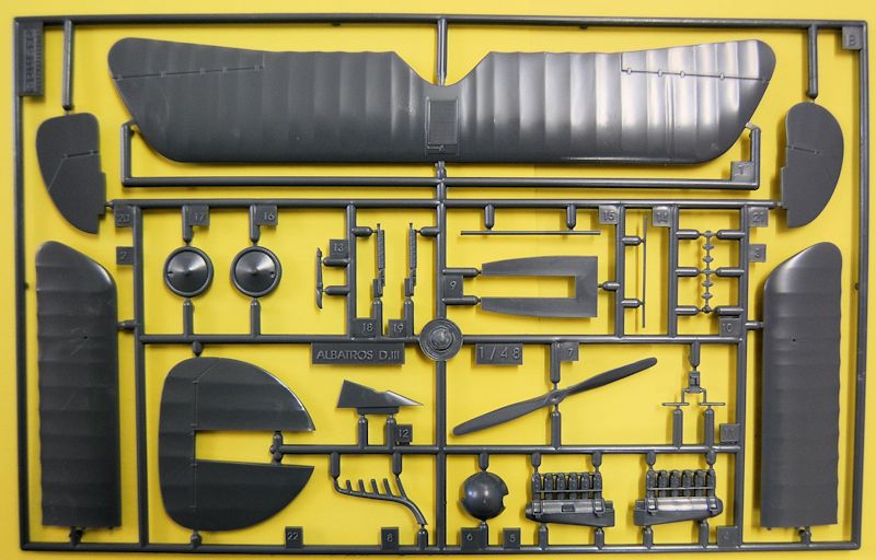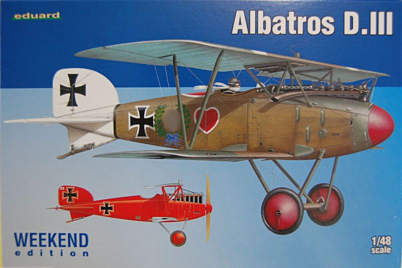 Vorbild: : Die Albatros D.III war ein deutsches, einsitziges Jagdflugzeug des ersten Weltkriegs. Mit ihrer Indienststellung im Januar 1917 errang sie für ein halbes Jahr die Luftüberlegenheit für das Kaiserreich im Kampf mit den Alliierten. Besonders im Blutigen April schossen die Albatrosse 151 gegnerische Maschinen (bei einem Eigenverlust von 30 Flugzeugen) ab. Das Blatt wendete sich erst mit dem Auftauchen der moderneren und schnelleren Spad S.VII und Sopwith Triplane. Insgesamt wurden 1340 Flugzeuge gebaut. Als Bewaffnung kamen synchronisierten Zwillings-MGs zum Einsatz.