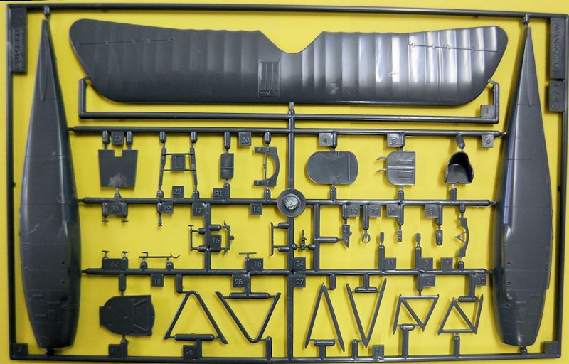 Bausatz: Bei dem Bausatz handelt es sich um eine Wiederauflage von 2006. Lediglich der Stülpkarton und die Decals wurden 2016 neu gestaltet. Auf zwei grauen Spritzlingen sind 55 Bauteile vorhanden (zwei Teile werden nicht benötigt).
