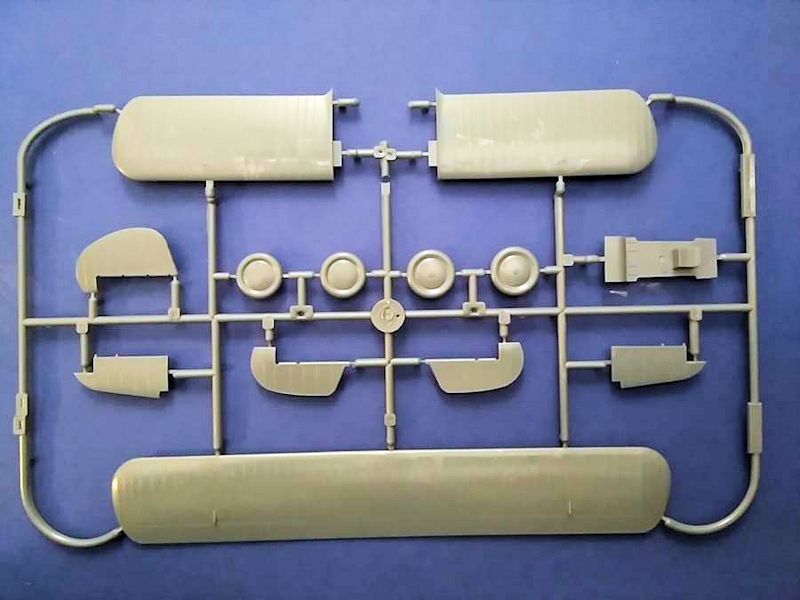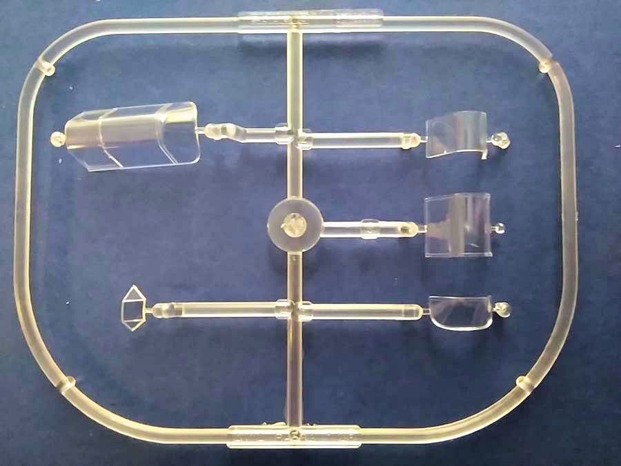 Die Teile weisen kaum Grat oder Sinkstellen auf und haben feine, konsistente Gravuren. Einige Teile haben silbrige Schlieren, die wahrscheinlich gussbedingt sind. Die Glasteile sind dünn und klar. Der Rahmen mit den Klarsichtteilen enthält auch die geschlossene Haube der IV. Baureihe, wir brauchen nur die kleine Windschutzscheibe.