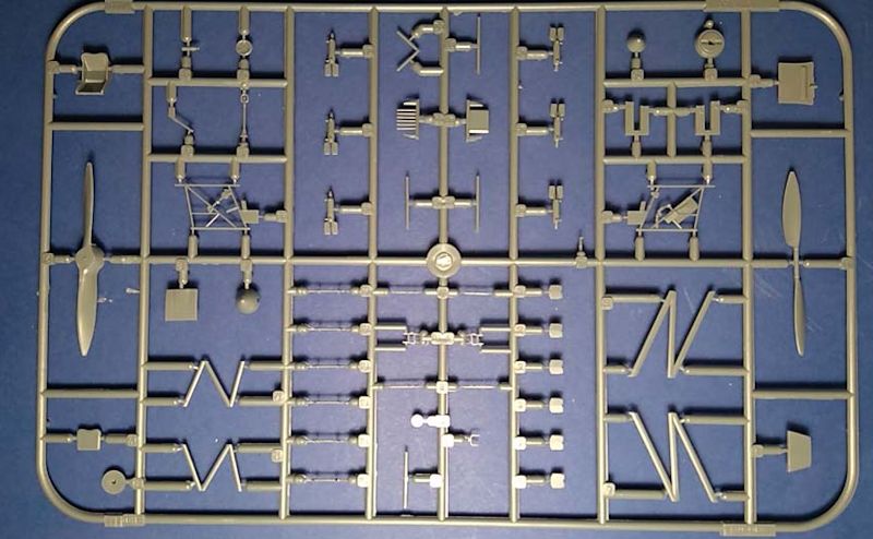 Die Fotoätzteile dienen wie üblich vor allem der Verfeinerung des Cockpits mit einem super bedruckten Sandwich-Instrumentenbrett, bedruckten Gurten und diversen Kleinteilen für Innen und Außen. Eduard stellt die Cockpitseitenwände durch schön detaillierte separate Teile dar. Neben dem Holzpropeller für die vorliegende Version gibt es auch einen Metallpropeller für spätere Varianten. Seiten- und Höhenruder sind separate Teile. Für das Fahrwerk gibt es Hosenbeine für drei der Varianten.