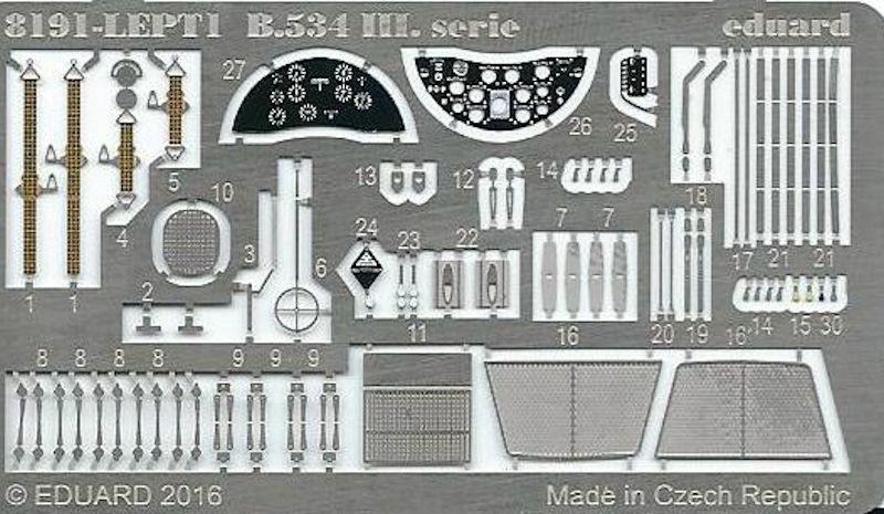 Bausatz: Frühere Avia B-534-Bausätze. Im kleinen Maßstab gab es bereits in den siebziger Jahren eine für die Seltenheit des Vorbildes recht erstaunliche Anzahl von Kits, zunächst die frühen Kits von Kovozavody, dann Anfang der 2000er solche von KP und aktuelle von RS. In 1:48 war MPM in den 1980ern mit Kits der Serien I und IV die Vorreiter, dann folgte Legato mit einer Serie I Maschine. Alle bis dahin erschienen Modelle in 1:48 waren Mixed-Media-Kits. Eduard hat dann in den letzten Jahren ein wahres Feuerwerk von B-534 Modellen in Spritzguss in den drei Maßstäben 1:144, 1:72 und 1:48 abgebrannt. Sie sind wie bei den Tschechen üblich in verschiedenen Ausstattungsvarianten als ProfiPACK mit bedruckten Ätzteilen, Maskierfolien und zahlreichen Decalvarianten, als Weekend-, Special-Editionen und Overtrees erschienen. Dabei wurden die III. und die IV. Serie bedacht.