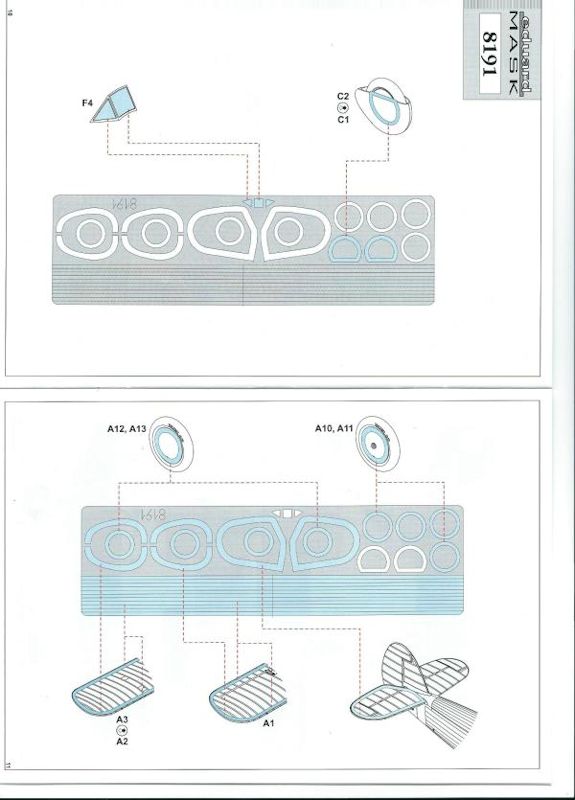 Erwähnenswert ist der auffällig große Maskierfolienbogen, der auch Streifen für die andersfarbige Lackierung der Randbögen von Flügeln und Leitwerken bietet.