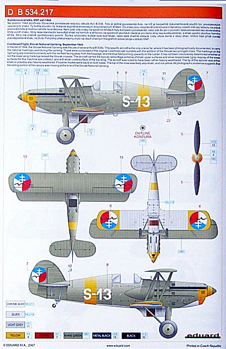 Vorbild: Der erste Prototyp der B-534 hatte am 25. Mai 1933 seinen Erstflug. Für die Luftstreitkräfte der CSR entstanden in vier Serien 445 B.534 und noch mal 120 Exemplare der Kanonenversion Bk.534 wurden bestellt. Nach dem Zerfall der CSR im März 1939 gingen die vorhandenen Maschinen an die deutsche Luftwaffe und an die Luftstreitkräfte der Slowakei.