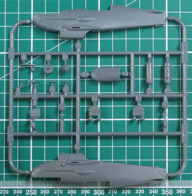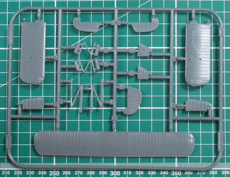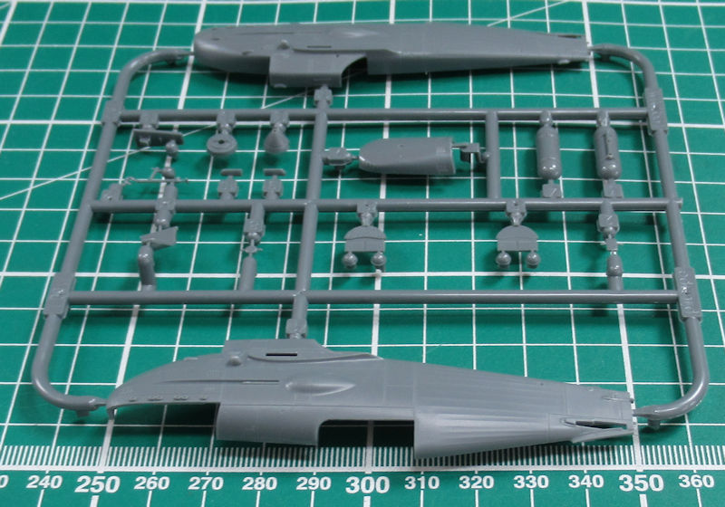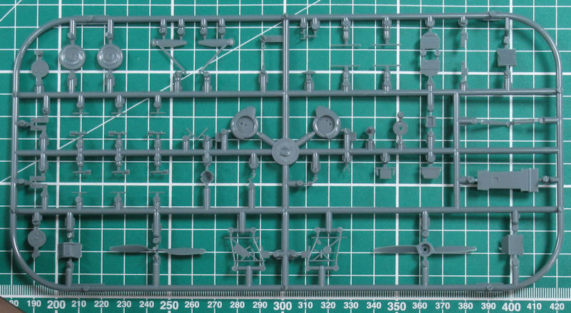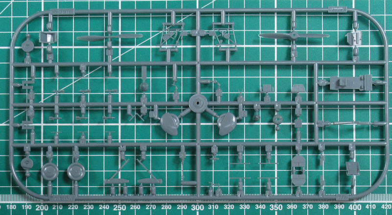 In dem attraktiven Stülpkarton befinden sich gut verpackt drei hellgraue Spritzlinge mit 76 Einzelteilen, ein klarer Spritzgussrahmen mit acht Teilen, eine mehrfarbige Bau- und Bemalungsanleitung und ein Decalbogen. Die Teile sind aus anderen Bausätzen bekannt und wurden seit dem Erscheinen 2015 teilweise überarbeitet. Ein paar Teile sind für andere Versionen und wandern in die Restekiste.