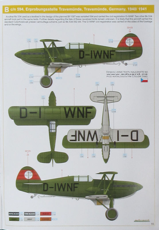 Vorbild: Der erste Prototyp der B-534 hatte am 25. Mai 1934 seinen Erstflug. Die letzen Exemplare wurden von den Aufständischen beim Slowaksichen Nationalaufstand 1944 eingesetzt. Dazwischen flog dieser Jäger bei den Luftwaffen der CSR, der Slowakai, Ungarns, Bulgariens und der deutschen Luftwaffe.