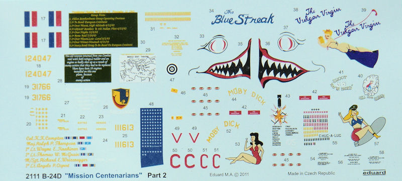 Bausatz: Hierbei handelt es sich um ein interessantes Upgrade des bekannten MINICRAFT-Bausatzes mit neuen Decals, Fotoätzteilen, Masken und Bauanleitung. Es können aus dem Kit B-24 D gebaut werden, die 100 Missionen absolviert hatten.