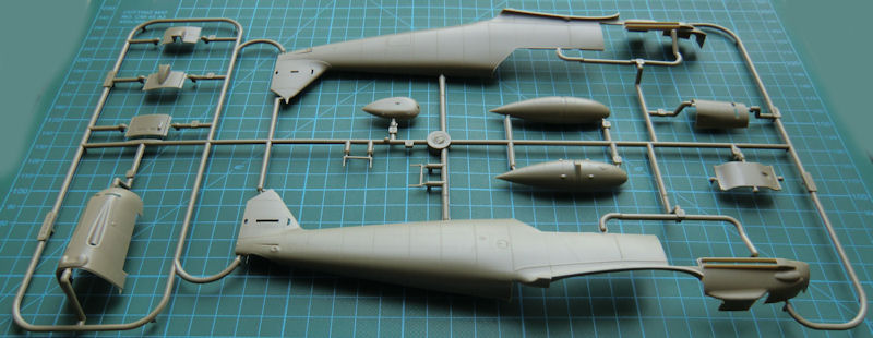 Der Bau beginnt hier mit dem Cockpit. Das Instrumentenbord besitzt feinste Instrumente mit enstprechenden leicht erhabenen Strukturen oder man setzt das Decal dafür. Fotoätzteile gibt es natürlich nicht in der Weekend-Edition. Leider gibt es nicht mal Sitzgurte. Dafür liefert Eduard einen recht ordentlichen DB 601 samt Zubehör. Die Motorhaube kann aber bei Bedarf offen bleiben. Dann sind auch die eingebauten MGs sichtbar.