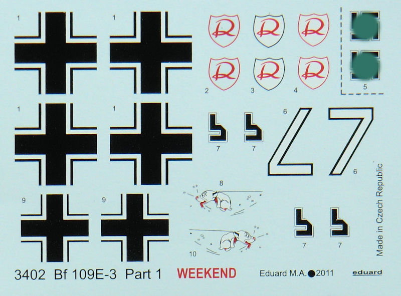 Bausatz: Nachdem es viele Jahre nur die Messerschmitt Bf 109E von Hasegawa und Matchbox in 1/32 gab erschienen vor einiger Zeit der Kit von Eduard der die Meßlatte nach oben setzte. Dann folgte ein Kit von TRUMPETER und als jüngster Vertreter der von cyber-hobby.com. Eduard hat schon diverse Varianten im Angebot. So gibt es hier die E-3-Version als „Weekend“-Edition.