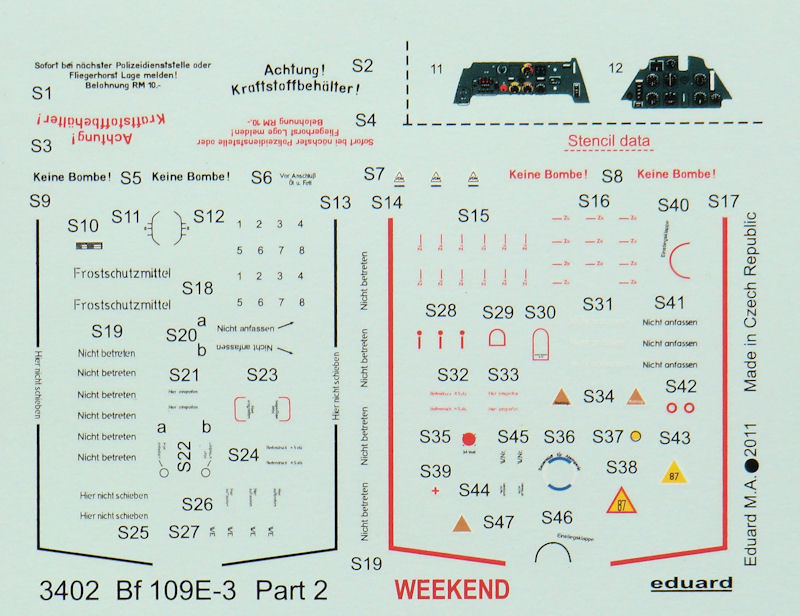 In der Weekend-Edition gibt es nur eine Decalvariante. Die Bögen ist aber tadellos im Register auf hellblauem Trägerpapier gedruckt. Ein Bogen enhält fast ausschließlich die Wartungshinweise.