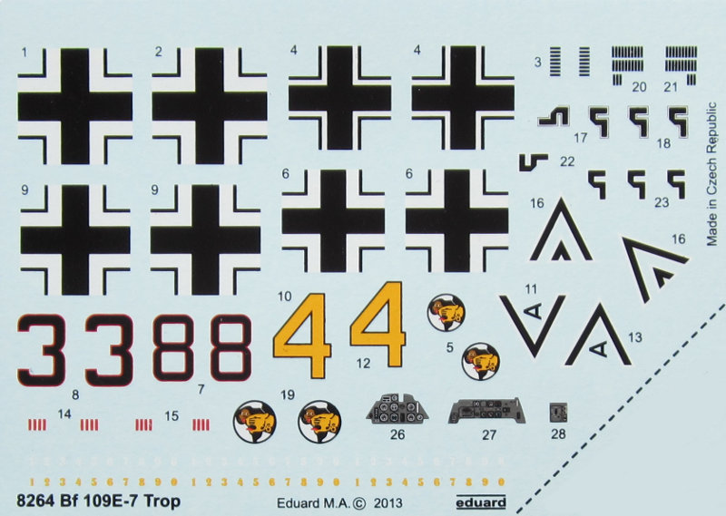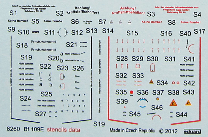 Eduard ist schon fast seit Beginn des Bestehens auch Decalproduzent und nachdem in der Geschichte des Herstellers zusätzlich auf Produzenten wie Propagteam, Aviprint und zuletzt Cartograf zurückgegriffen wurde, fertigt Eduard nun wieder vermehrt eigene Nassschiebebilder. Diesem Bausatz liegen sehr gute Decals von Eduard bei.