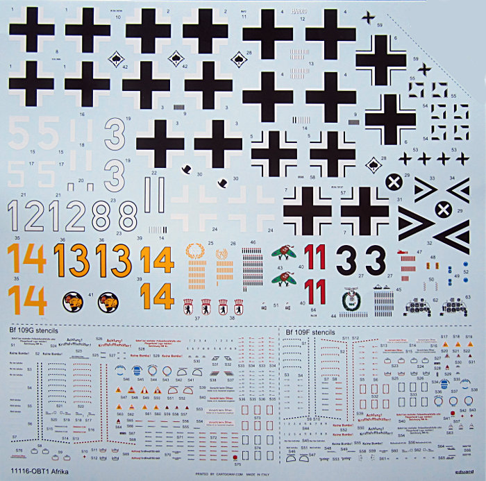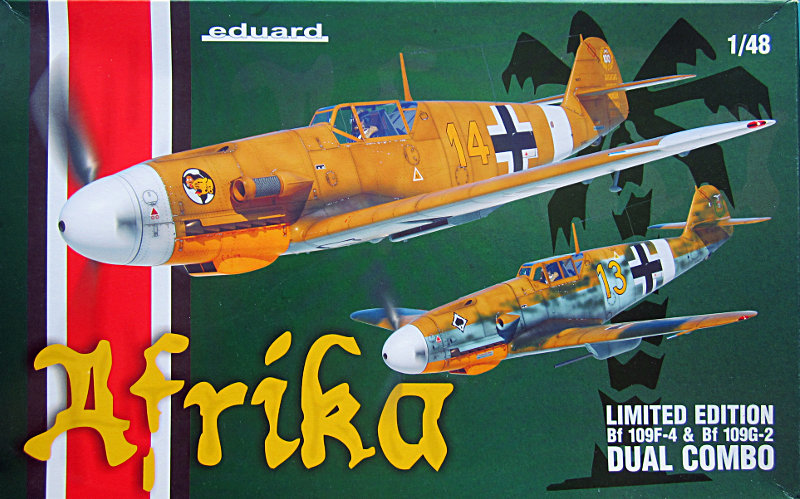 Bausatz: Eduard nutzt den eigenen Formenpool nun nach und nach für Sonderausgaben (Limited Editions), die finnischen Bf 109 seien hier als Beispiel genannt. Nun kommt auch die erste Afrika Edition in den Handel. Enthalten sind je ein Bausatz der Bf 109F-4 und Bf 109G-2 mit einer größeren Anzahl interessanter Abziehbildvarianten für beide Baumuster. Noch bevor ich dieses Muster erhalten hatte, kaufte ich mir einen Bausatz und habe daher auch das erste Modell schon fast fertig.