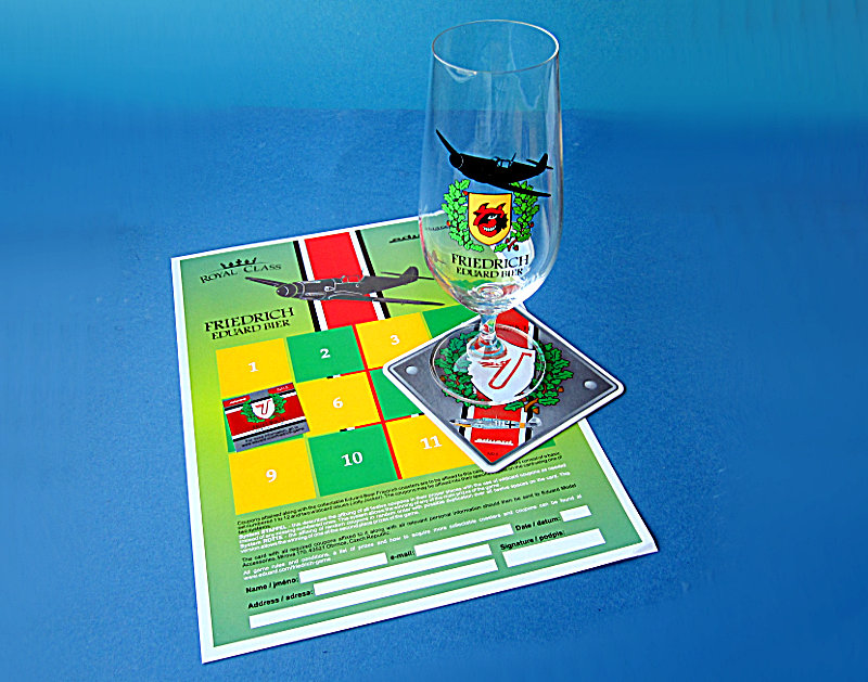 Fazit: Wie immer eine gut aufgemachte Sonderedition des Eduard Bf109F Bausatzes. In Deutschland muss man um die 70 Euro für den Bausatz berappen, bekommt aber 2 Profipacks mit Unmengen Decals und Resinsätzen für Räder und Auspuffstutzen. Dazu gibt’s dann noch den Bierdeckel und das passende Glas. Allerdings ist es schon so, das dieser Royal Class ein wenig "das Besondere" fehlt, es gibt keine "Wrackteile" oder Bücher. Für den reinen Sammlermarkt also nichts spektakuläres. Für mich als Modellbauer aber ein tolles Paket.