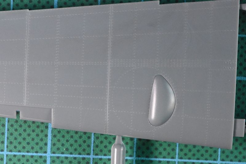 Die zu großen nierenförmigen Beulen auf den Flügeloberseiten sollten durch die entsprechenden Teile aus dem Fujimi- oder Hasegawa- Bausatz ersetzt werden oder ein wenig mit Sandpapier bearbeitet werden. Die große längliche Fahrwerksabdeckung wird Eduard erst mit der Modellvariante G-10 WNF/Diana (bzw. S-99) anbieten. Wer nicht warten will, greife ebenfalls auf Fujimi oder Hasegawa zurück oder nimmt den Oberflügel aus dem Revell Bausatz.