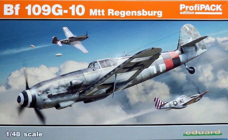 Bausatz: Der im Frühjahr erschienenen Bf 109 G-14 folgt jetzt mit dem Modell der G-10 der Abschluss der Gustav Serie. Die Profi Pack Edition beinhaltet Fotoätzteile (Cockpitdetails, Gurte, Kühlergrätings und weitere Details für den Rumpf). Auch eine Maskierfolie ist beigegeben. Damit lässt sich die Kanzel, die Rückenpanzerung und Reifen maskieren.