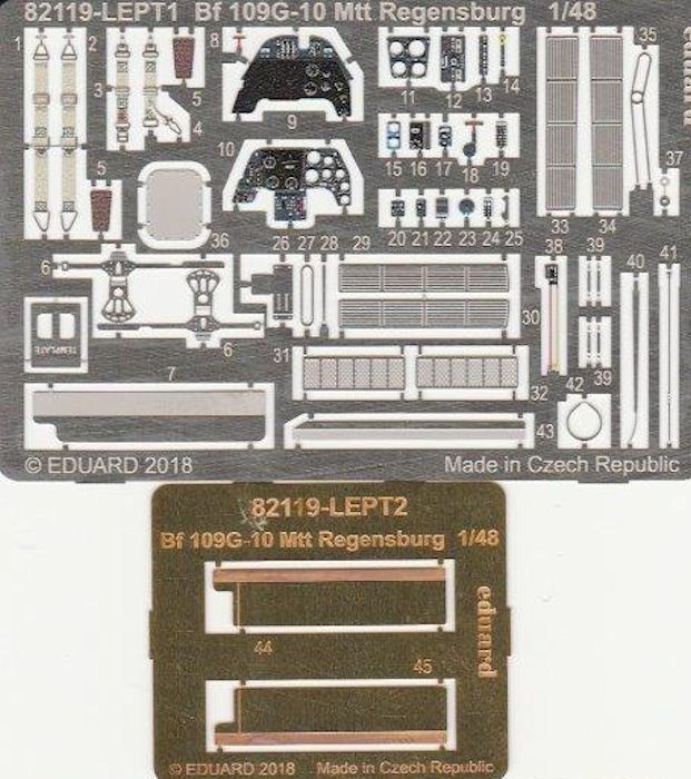 Aus einer neuen Gussform entstand der Spritzling mit den Bauteilen, um eine G-10 Variante aus dem Messerschmitt Werk Regensburg darstellen zu können. An den neuen Rumpfteilen fällt gleich die aerodynamische ausgeformte Cowling auf. Aber auch ein neuer Propeller, das vergrößerte Seitenleitwerk, ein neuer Ansaugstutzen für den Turbolader, neue Teile für die Cockpitdetails und für den veränderten Ölkühler sind vorhanden.