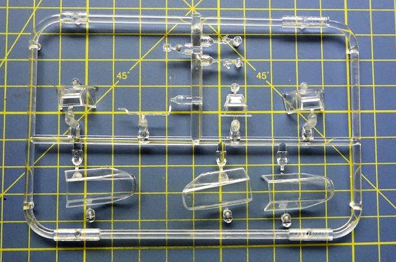 Auch der Spritzling mit den Klarsichtteilen darf nicht fehlen. Dieser zeigt sich im Gegensatz zu dem G-14 Bausatz leicht verändert. Auf ihm befinden sich drei Varianten der Gallandhaube, des Gallandpanzers (Rückenpanzerung), zwei Varianten der vorderen Cockpitverglasung, zwei Revi Visiere und der Treibstoffkontrollschlauch der im Cockpit eingebaut wird.