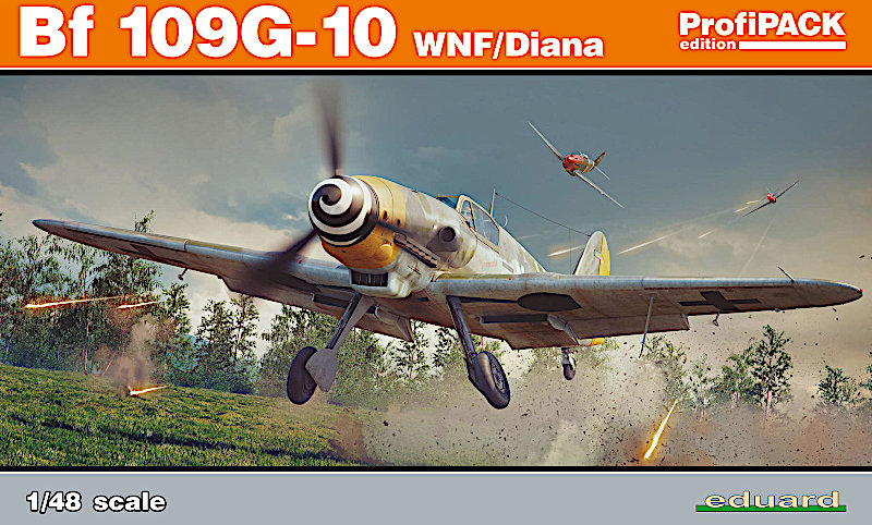 Vorbild: Bei der Bf 109G-10 handelt es sich um eine der letzten zum Kriegsende produzierten Varianten. Und zwar wurden diese Jagdflugzeuge der deutschen Luftwaffe unter dem Decknamen "Diana", Untertage von den Wiener Neustädter Flugzeugwerken zusammengesetzt. Bis zum bitteren Ende sollten also diese hoffnungslos, gegenüber der alliierten Luftmacht, unterlegenen Maschinen das sogenannte "Dritte Reich" verteidigen. Obwohl die Messerschmitt G-10 das schnellste und wendigste Kampfflugzeug der 109 Serie war, konnte die Luftwaffe damit nichts mehr ausrichten. Es fehlte an erfahrenden Piloten ebenso, wie an Kraftstoff und anderen kriegswichtigen Rohstoffen. Ansonsten wäre noch zu erwähnen, dass die G-wie Gustav Serie wohl die beste Konstruktionsreihe des Standartjägers der Luftwaffe war. Sie hatte eine neuartige Kabinenhaube von den Erla Werken in Leipzig, auch "Galland Haube" genannt. Er forderte eine bessere Sicht der Piloten beim Luftkampf, welche die typisch verstrebte Kanzel der vorigen Messerschmitt nicht mehr bieten konnte. Angetrieben wurde die Me-109 G-10 von einem Daimler Benz DB 605D Reihenmotor mit einer Wasser-Methanol-Einspritzanlage. Die Bewaffnung bestand aus einer Maschinenkanone MK 108 (30mm), durch die Propellerhaube schießend, und zwei MG 131 unter der Motorhaube.