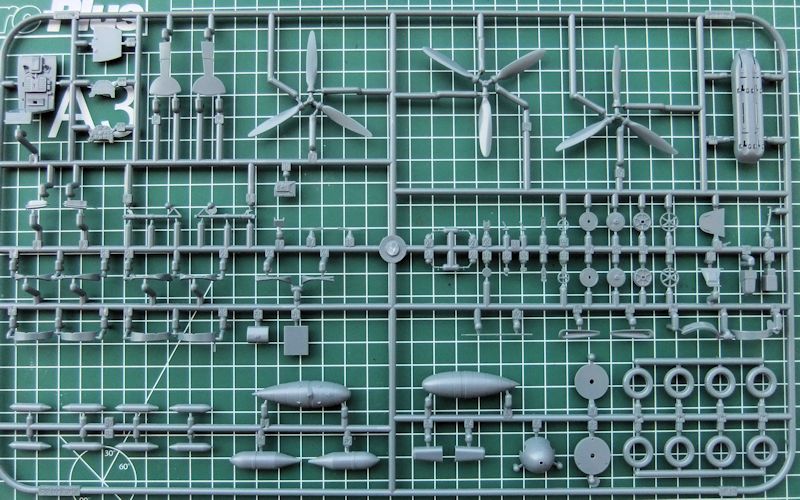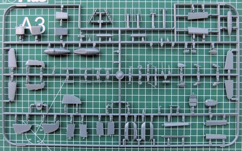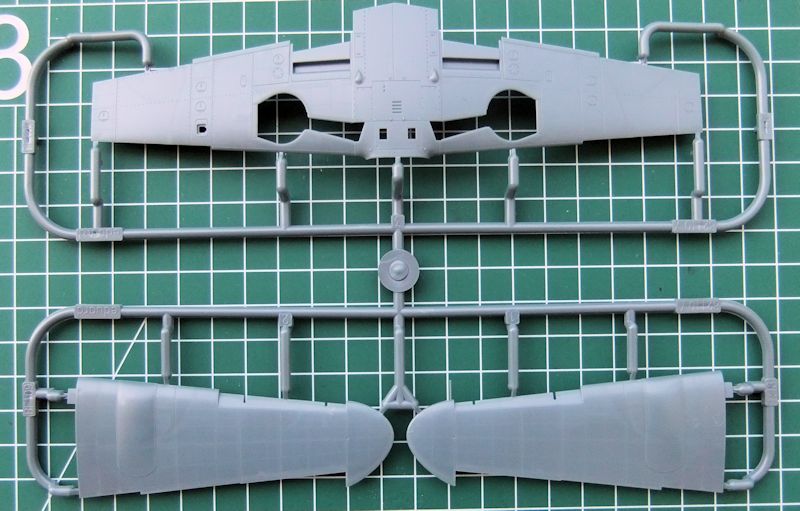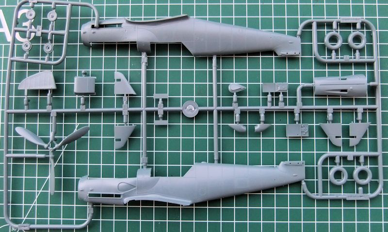 Bausatz: Der Bausatz selbst ist ein typisches Produkt moderner Modellbautechnik der Firma Eduard. Die in einem dunklen blaugrau gespritzten ca. 190 Teile sind sehr fein und teilweise auch sehr winzig in ihrer Fertigung. Die Oberflächengravuren von Zelle, Rumpf und Tragflächen, sind dermaßen fein und präzise, dass die winzigen versenkten Nietenreihen am besten ins Auge fallen, wenn man die Teile flach zum Tageslicht hält. Die Detaillierung ist angefangen bei dem Cockpit, bis hin zu den Radschächten außergewöhnlich für diesen Maßstab.