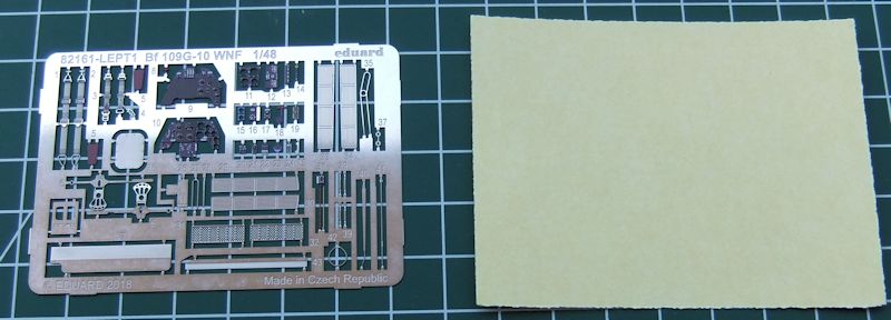 Der Profipack hat natürlich auch eine Platine mit farbigen Messingteilen, mit denen sich besonders das Cockpit aufwerten lässt. Außerdem gibt es noch einen Maskierungssatz für die Kabine und den Rädern.
